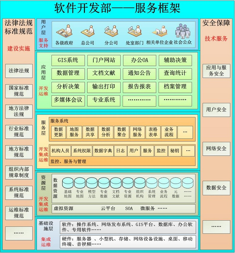 軟件開發(fā)與系統(tǒng)集成: 不僅定制開發(fā)通用軟件系統(tǒng),更專業(yè)開發(fā)各種地理信息系統(tǒng)。采用各種地理信息系統(tǒng)(GIS)平臺與數(shù)據(jù)庫管理平臺相結(jié)合,基于手機、計算機、平板等終端設(shè)備,開發(fā)建設(shè)BS、CS結(jié)構(gòu)的應(yīng)用系統(tǒng)。包括二三維測繪與地理信息系統(tǒng)(GIS)、管理信息系統(tǒng)(MIS)、應(yīng)急輔助決策系統(tǒng)、電子政務(wù)與辦公自動化系統(tǒng)(OA)、電子商務(wù)平臺(EB)、虛擬仿真系統(tǒng)(VRS)、人工智能(AI)等。